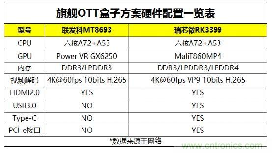 超高規(guī)CPU與GPU,可秒殺目前市場主流的海思Hi3798、海思3798C V200、全志H8、晶晨S905、聯發(fā)科MT8693等產品。而性能與RK3399差距不算太大的晶晨S912,目前量產時間仍待定,因此在整體盒子芯片環(huán)境中,RK3399目前尚無對手。