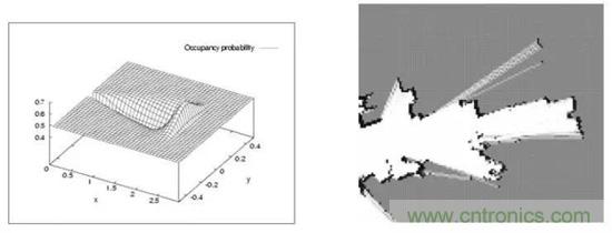 這種地圖看起來和人們所認知的地圖沒什么區(qū)別,它最早由NASA的AlbertoElfes在1989年提出,在火星探測車上就用到過,其本質是一張位圖圖片,但其中每個“像素”則表示了實際環(huán)境中存在障礙物的概率分布。