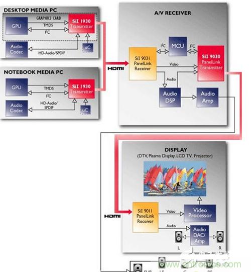 HDMI(High DefiniTIon MulTImedia)是在2002年由日立、松下、飛利浦、Silicon Image、索尼、湯姆遜、東芝共7家公司成立的HDMI組織制定的全新數(shù)字視頻/音頻傳輸標準。初始版本為HDMI 1.0,06年底繼而頒布1.3標準,HDMI在針腳上與DVI兼容,只是封裝規(guī)格不同,但HDMI相較于DVI大幅增加了信道帶寬,輕松應(yīng)對目前高端市場高分辨率高刷新率帶來的數(shù)據(jù)傳輸壓力。
