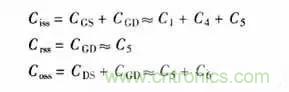 (3)C2+C4代表從柵極到源極P區(qū)間的電容。C2是電介質(zhì)電容,共值是固定的。而C4是由源極到漏極的耗盡區(qū)的大小決定,并隨柵極電壓的大小而改變。當柵極電壓從0升到開啟電壓UGS(th)時,C4使整個柵源電容增加10%~15%。