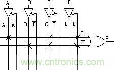 PLD將以下面的方式來實(shí)現(xiàn)組合邏輯f: