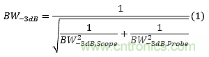 示波器和探頭系統(tǒng)的最高帶寬由[1]給出: