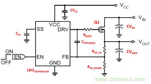 圖1:簡單的低壓降控制器