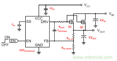 【導(dǎo)讀】在亞洲生活和工作讓我遇到了很多有趣的支持問題。例如,最近有人問我TI有沒有針對低壓降控制器的跨設(shè)備。該控制器位于小外形晶體管(SOT)-236封裝內(nèi),該封裝在印刷電路板(PCB)上所占面積為3mm×3mm。圖1所示為所推薦的控制器原理圖。