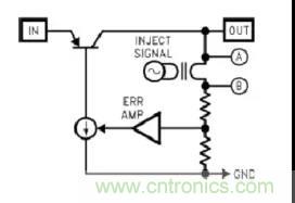 可以通過網(wǎng)絡(luò)分析儀來測量回路增益,它通過向網(wǎng)絡(luò)回路注入低電平的正弦波,然后從直流信號掃描到使增益下降到0dB的頻率來測量增益的響應(yīng)。