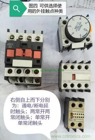 再來看由于該型繼電器只有兩對常開觸點(diǎn)和兩對常閉觸點(diǎn),一旦出現(xiàn)觸點(diǎn)不夠情況時,難不成還要再安裝一只繼電器?其實(shí)在設(shè)計之初,這個問題就已經(jīng)被考慮到。圖四就是該型繼電器所能加裝的“外掛”裝備: