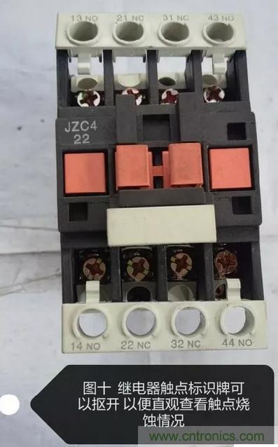 最后圖十所展示的是直接查看繼電器各觸點(diǎn)燒蝕情況的方法,該方法相較萬用表測量法,更為直觀: