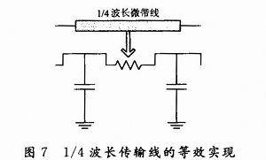 這是一個(gè)180°定向耦合器,也稱為rat-race網(wǎng)絡(luò),如圖5所示。物理上可以通過(guò)微帶實(shí)現(xiàn),如圖6所示。然而對(duì)于第1部分提出的710 MHz天線,由于波長(zhǎng)太長(zhǎng),這樣的耦合器在移動(dòng)設(shè)備上無(wú)法實(shí)現(xiàn)。為了實(shí)現(xiàn)去耦合,可以用貼片電感和電容做出成等效傳輸線,從而用電感和電容做成一個(gè)耦合網(wǎng)絡(luò),這就可以顯著降低耦合器占用的體積。如圖7所示,一個(gè)等效1/4波長(zhǎng)傳輸線可以用兩個(gè)電容和一個(gè)電感來(lái)等效代替。電容和電感的計(jì)算公式為: