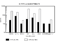例如,典型情況下,一個(gè)人所帶電荷可以表征為一個(gè)150pF的電容器與330Ω的電阻器串聯(lián)。推算其靜電電壓有可能在8~15kV范圍內(nèi),甚至高達(dá)25kV。當(dāng)人接近系統(tǒng)時(shí),靜電場(chǎng)(ESD)和不均勻電壓分布會(huì)導(dǎo)致系統(tǒng)內(nèi)元件被損壞。一般來(lái)說(shuō),ESD很容易損壞未受保護(hù)的IC。據(jù)統(tǒng)計(jì),各類(lèi)IC的ESD擊穿電壓分布如圖1所示。