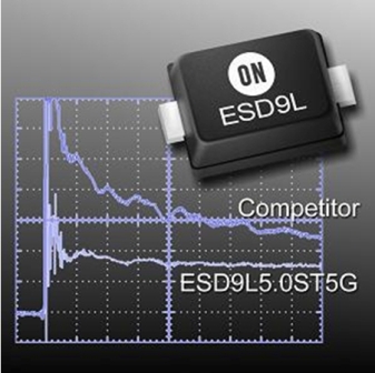 圖2:安森美半導體ESD9L的ESD保護性能明顯優(yōu)越于競爭器件。