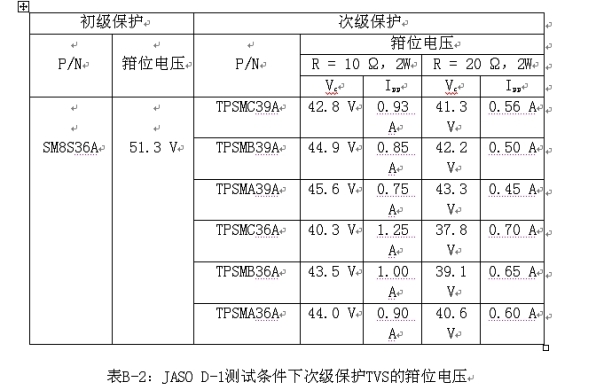 在24 V測試條件下,初級保護TVS的擊穿電壓如表B-1所示。這些將導致在穩(wěn)壓器、儀表總成集成電路和其他電子設備上出現(xiàn)高電壓。