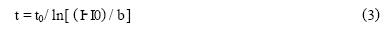 式中t0,I0,b均為常數(shù)。由圖1曲線部分曲線取若干特殊點(diǎn),經(jīng)計(jì)算機(jī)進(jìn)行數(shù)學(xué)處理,得到t0,I0,b的具體數(shù)值: