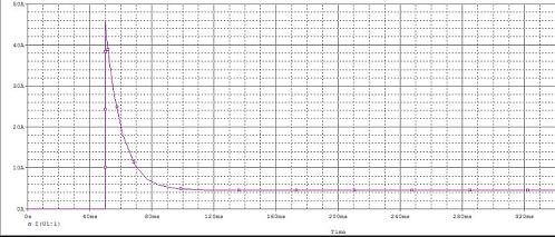 ?。梢哉J為在10ms的時間后電流達到了穩(wěn)態(tài)電流值,此時的沖擊電流已經(jīng)下降到初始值的約63%。)