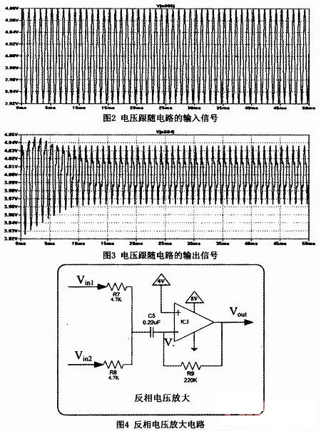 在電壓跟隨電路中,運(yùn)放IC1和IC2起到了電壓跟隨器的作用,將正信號(hào)輸入端疊加了直流偏置的信號(hào),無(wú)變化地傳到下一級(jí)。運(yùn)放電壓跟隨器中輸入阻抗很大,輸出阻抗很小。由于輸入阻抗很大,輸入的電壓幾乎無(wú)損失地傳遞給運(yùn)放,而輸出阻抗很小,又使輸出的信號(hào)幾乎全部傳遞給后面的電路。運(yùn)放起了很好的緩沖作用,隔斷了后級(jí)對(duì)輸入信號(hào)的影響。