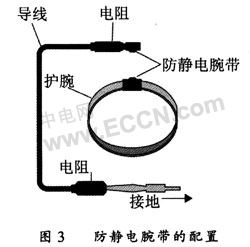 (4)操作者在接觸電子產(chǎn)品時(shí)必須戴防靜電手腕帶,并要求戴腕帶的操作人員每天上、下午上班前各測(cè)試一次,以保證腕帶與人體的良好接觸,腕帶電阻1 MΩ;