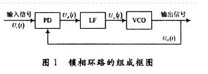 當(dāng)輸入信號和輸出信號頻率相同相差恒定時,鑒相器輸出中的低頻分量為零,環(huán)路濾波器的輸出也為零,壓控振蕩器的振蕩頻率不發(fā)生變化。如果二者的頻率不一致,則鑒相器將產(chǎn)生低頻分量,并通過環(huán)路濾波器使壓空振蕩器的頻率發(fā)生變化。環(huán)路設(shè)計得恰當(dāng),這種變化將不斷使輸出信號的頻率與輸入信號的頻率趨于一致,最終二者頻率相等相位差恒定,Ud(t),Uc(t)均為直流電壓,VCO的輸出頻率將停止變化,環(huán)路處于“鎖定”狀態(tài)。當(dāng)輸入信號的頻率發(fā)生變化時(VCO的控制范圍),VCO的輸出就能跟上這個變化,實施跟蹤和捕捉的過程,達到頻率相等的要求