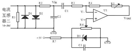 在檢測(cè)電流的大小時(shí),根據(jù)測(cè)試電流的周期(工頻)按照每個(gè)周期40個(gè)點(diǎn)進(jìn)行采樣,采樣一個(gè)周期后,根據(jù)電流互感器的衰減倍數(shù)和提升電壓的數(shù)值,通過軟件算法計(jì)算出實(shí)際的電流有效值。電路應(yīng)滿足如下條件,當(dāng)交流電流的瞬時(shí)值達(dá)到正向峰值時(shí),放大器輸出5V;當(dāng)交流電流的瞬時(shí)值達(dá)到負(fù)向峰值時(shí)放大器輸出0V。