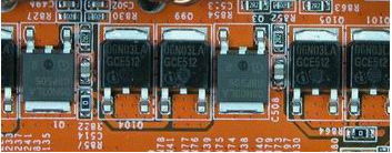 一般主板燒壞,維修人員最先檢查的都是Mosfet。質(zhì)量不好的Mosfet在長時(shí)間使用的時(shí)候,會非常燙手,甚至有燒毀的可能。所以,選購主板,觀察Mosfet這個(gè)環(huán)節(jié)上,最好考慮Philips,Infineon,IR的品牌,其次考慮Alpha,ST,ON這些品牌。如下圖所示: