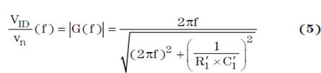 將差動網(wǎng)絡(luò)轉(zhuǎn)換為單端網(wǎng)絡(luò)(請參見圖 4),簡化了 G (f) 的推導(dǎo)過程,但卻要求 C′1 = 2C1,R′1= R1/2,C′2 = 2C2,以及 R′2 = R2/2。