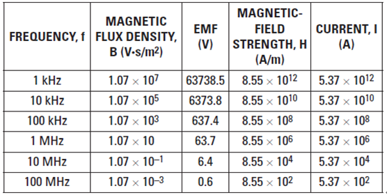 EMF 為以伏特為單位的電勢,f 為磁場頻率,而 A 為以平方米 (m2) 為單位的環(huán)路面積。