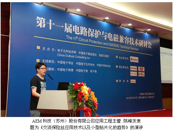 電路保護專業(yè)技術與解決方案供應商AEM科技股份有限公司于2012年4月10日出席了由CNT Networks、中國電子展組委會和China Outlook Consulting聯(lián)合舉辦的第十一屆電路保護與電磁兼容技術研討會。