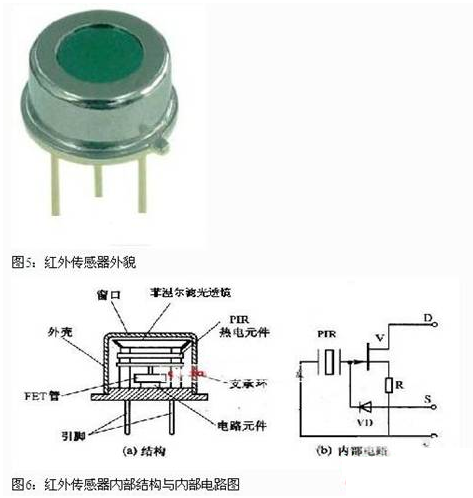 被動(dòng)式紅外傳感器有三個(gè)關(guān)鍵性的元件:菲涅爾濾光透鏡,熱釋電紅外傳感器(PIR)和匹配低噪放大器。菲涅爾透鏡有兩個(gè)作用:一是聚焦作用,即將熱釋紅外信號(hào)折射在PIR上:二是將探測區(qū)內(nèi)分為若干個(gè)明區(qū)和暗區(qū),使進(jìn)入探測區(qū)的移動(dòng)物體(人)能以溫度變化的形式在PIR上產(chǎn)生變化的熱釋紅外信號(hào)。一般還會(huì)匹配低噪放大器,當(dāng)探測器上的環(huán)境溫度上升,尤其是接近人體正常體溫(37℃)時(shí),傳感器的靈敏度下降,經(jīng)由它對增益進(jìn)行補(bǔ)償,增加其靈敏度。輸出信號(hào)可用來驅(qū)動(dòng)電子開關(guān),實(shí)現(xiàn)LED照明電路的開關(guān)控制。圖5是紅外傳感器外貌,圖6 是紅外傳感器內(nèi)部結(jié)構(gòu)與內(nèi)部電路圖。圖7 是帶紅外傳感器的LED照明燈具,這是一款E27標(biāo)準(zhǔn)螺口燈頭的燈具,它的電源適用范圍是 AC180V-250V (50/60Hz), 紅外傳感器檢測范圍大約在3M—15M,它的標(biāo)準(zhǔn)產(chǎn)品 IFS-Bulb 3W燈具達(dá)80 lm ,5W燈具達(dá)140 lm 。在LED光源模塊的中央部分嵌入紅外線傳感器。一旦紅外傳感器檢測到人的體溫,LED電燈泡將會(huì)在50秒內(nèi)自動(dòng)開啟與關(guān)閉。適用于任何一種室內(nèi)應(yīng)用,如走廊、儲(chǔ)藏室、樓梯和大廳入口處。