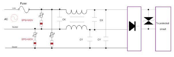 9、專用于高頻通訊信號(hào)線路進(jìn)行防護(hù),一般不能直接用在有源電路上進(jìn)行防護(hù),在有源線路中它必須配合限壓型(MOV、HYPERFIX)的保護(hù)器件來同時(shí)使用。