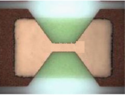 然而,還必須嚴(yán)格控制熔體的幾何形狀,才能控制貼片式保險(xiǎn)絲的額定電流。使用照相印刷工藝的熔體從結(jié)構(gòu)上保證了能夠產(chǎn)生精確的幾何輪廓,把端子間未用的導(dǎo)電材料溶解掉。通過(guò)照相印刷工藝,可控制熔體的長(zhǎng)度和寬度,達(dá)到與濺射薄膜層厚度相同的準(zhǔn)確度和精度。
