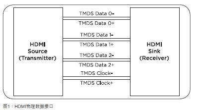 HDMI的物理數(shù)據(jù)接口包含四個(gè)最小化差分信號(hào)傳輸(TMDS)對(duì):三個(gè)數(shù)據(jù)差分對(duì)通道和一個(gè)時(shí)鐘差分對(duì)通道,如圖1所描述。
