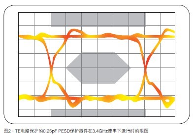 TE電路保護(hù)的0.25pFPESD保護(hù)器件在3.4GHz速率下運(yùn)行時(shí)的眼圖表現(xiàn)如圖2所示。