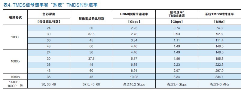 總之,HDMI運(yùn)行的速度取決於發(fā)射器和接收器的功能,以及信號(hào)源的分辨率和色彩深度。 TMDS對(duì)運(yùn)行的速度高達(dá)3.4GHz。