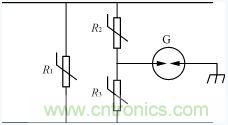 圖4是氣體放電管和壓敏電阻組合構(gòu)成的浪涌抑制電路。由于壓敏電阻有一致命缺點(diǎn):具有不穩(wěn)定的漏電流,性能較差的壓敏電阻使用一段時(shí)間后,因漏電流變大可 能會(huì)發(fā)熱自爆。為解決這一問題在壓敏電阻之間串入氣體放電管。但這又帶來了缺點(diǎn)就是反應(yīng)時(shí)間為各器件的反應(yīng)時(shí)間之和。例如壓敏電阻的反應(yīng)時(shí)間為25ns, 氣體放電管的反應(yīng)時(shí)間為100ns,則圖4的R2,G,R3的反應(yīng)時(shí)間為150ns,為改善反應(yīng)時(shí)間加入R1壓敏電阻,這樣可使反應(yīng)時(shí)間為25ns。
