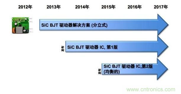 飛兆針對SiC BJT產(chǎn)品已經(jīng)有了一個完整的產(chǎn)品路線圖?,F(xiàn)在飛兆SiC BJT解決方案驅(qū)動部分還是分立式的,下一步我們首先開發(fā)SiC BJT驅(qū)動IC。SiC BJT驅(qū)動器和其他以往同類器件有很大的不同,由于通過電流很大需要特需驅(qū)動IC,所以飛兆有必要開發(fā)出專屬IC,防止EMC干擾。” 藍建銅說。