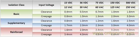 Fig. 4: The UL specifications for air and creepage clearances in medical electronics