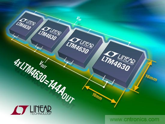 ●利用多個 LTM4630 實(shí)現(xiàn)多相并聯(lián)均流,電流可高達(dá) 144A