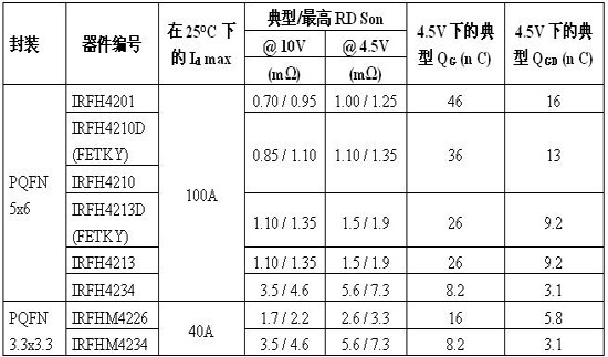 全新FastIRFET系列配備IR新一代硅技術(shù),采用符合行業(yè)標(biāo)準(zhǔn)的PQFN封裝,為分立式DC-DC轉(zhuǎn)換器提供基準(zhǔn)功率密度。該系列包括能夠提供低至0.7 mΩ導(dǎo)通電阻 (RDS(on)) 的IRFH4201,以及旨在降低鳴震和進(jìn)一步提升系統(tǒng)效率的IRFH4210D和IRFH4213D單片式FETKY組件。