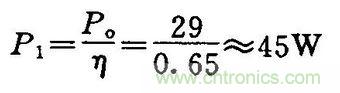 開關(guān)電源的效率η一般在60~90%之間,本例取η=0.65,則輸入功率為