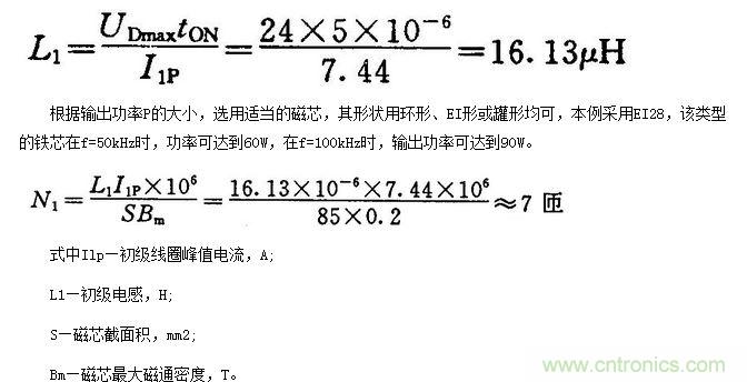 詳細(xì)的變壓器設(shè)計(jì)方法與計(jì)算相當(dāng)復(fù)雜,本文參照經(jīng)驗(yàn)公式,依據(jù)下面的步驟設(shè)計(jì)了本例轉(zhuǎn)換器中的高頻變壓器。