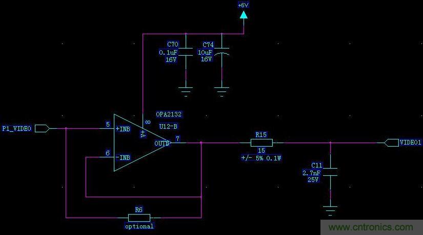 結(jié)論:當(dāng)運放本身的帶寬小于(3)式時,整個電路的帶寬受運放的限制,這時,電路加入R6應(yīng)比不加R6帶寬要寬。當(dāng)運放本身的帶寬大于(3)式時,電路帶寬由C11和R15決定。這種情況下,加入R6的意義不大。
