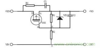 圖4 使用N型MOS管的輸入防反接電路原理圖
