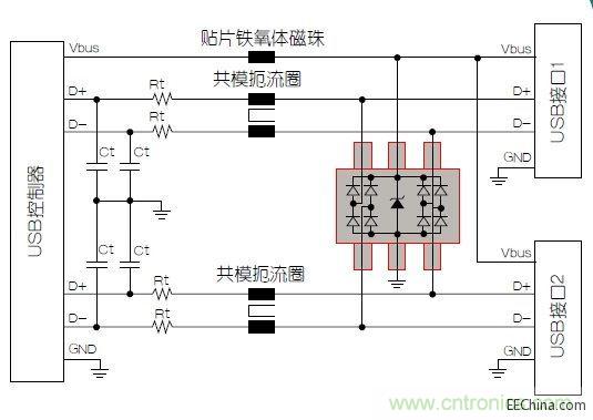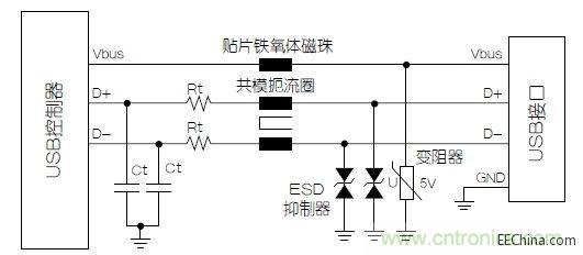 問題:其中一些點可能不受影響,這些點包括外購USB控制器的技術(shù)性實現(xiàn),或最終用戶使用“便宜的”USB電纜。因此必須采取一些預(yù)防性措施,防止接口受到可能損壞USB控制器的外部干擾的影響,同時通過電纜限制信號的干擾輻射量。