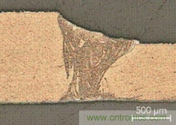 為了防腐蝕,大多數(shù)的熱成型材料都有鋁硅涂層。而在激光焊接過程中,鋁硅涂層將在焊縫中形成FeAl合金金相(如圖1所示),從而導(dǎo)致激光焊縫無法通過抗拉強(qiáng)度測(cè)試。因而,在激光焊接前必須去除鋁硅涂層。