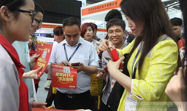 電子商務(wù)平臺的崛起,也使得營銷手段更加花樣百出地貼近消費者,再也不是以前坐等顧客上門挑選的被動局面,分銷商在展館里可謂是使出十八般武藝,力圖能激起消費者翻牌的欲望。這不,原先四處走動的觀眾,瞬間被抽中一百塊現(xiàn)金紅包的歡呼聲給吸引了過去,筆者也前往一探究竟,原來是華強電子網(wǎng)的展位上進行的免費認證超級買家抽紅包的活動。