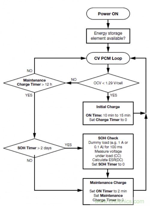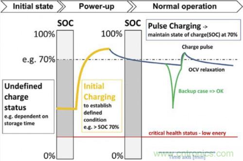 注:第2-5步補償自放電效應并通過這種涓流充電使儲能元件保持健康狀態(tài),同時還維持更長的時間。