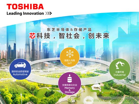 依托領先的芯片技術,構建智能的社會生活,從而開創(chuàng)充滿想象力的未來——這主題不僅僅展示了東芝作為先進半導體技術和產品的全球領導者的社會責任和愿景,更是對東芝半導體現(xiàn)狀的描述。依托該主題,東芝本次展會將展出以應用領域劃分的“Automotive”、“IoT”、“Industrial”和“Memory & Storage”的最新技術和產品。具體包括: