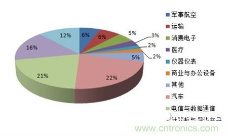 中國連接器市場已經(jīng)占據(jù)全球30%左右連接器市場,但是我國連接器還主要以中低端為主,高端連接器占比較低,從全球來看,汽車連接器是最大應(yīng)用市場。根據(jù)統(tǒng)計,汽車市場應(yīng)用是全球連接器最大的應(yīng)用市長,占比達到 22.2%。其次是電信與數(shù)據(jù)通信,約有 21%,另外計算機與工業(yè)分別占比達到 16%、12%。