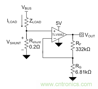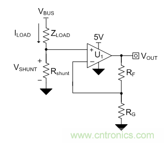 運(yùn)算放大器(op amp)。圖1是使用運(yùn)算放大器的典型低側(cè)電流感應(yīng)電路原理圖。