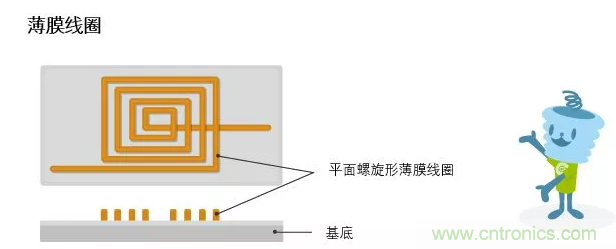 薄膜電感采用的是類(lèi)似于IC制作的工藝,在基底上鍍一層導(dǎo)體膜,然后采用光刻工藝形成線圈,最后增加介質(zhì)層、絕緣層、電極層,封裝成型。