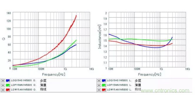 Murata有三種工藝的高頻電感,選擇了同感值(1.5nH)、同封裝、同容差的電感對(duì)比。