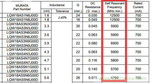 C0G/NP0類(lèi)的低損耗電容和高Q值RF繞線(xiàn)電感datasheet中一般都會(huì)主動(dòng)標(biāo)出自諧振頻率的具體值和測(cè)試方法。簡(jiǎn)單地說(shuō),電容在低于自諧振頻率的區(qū)間內(nèi)才有作為容性元件的利用價(jià)值,電感在自諧振頻率內(nèi)才有作為電感的利用價(jià)值。